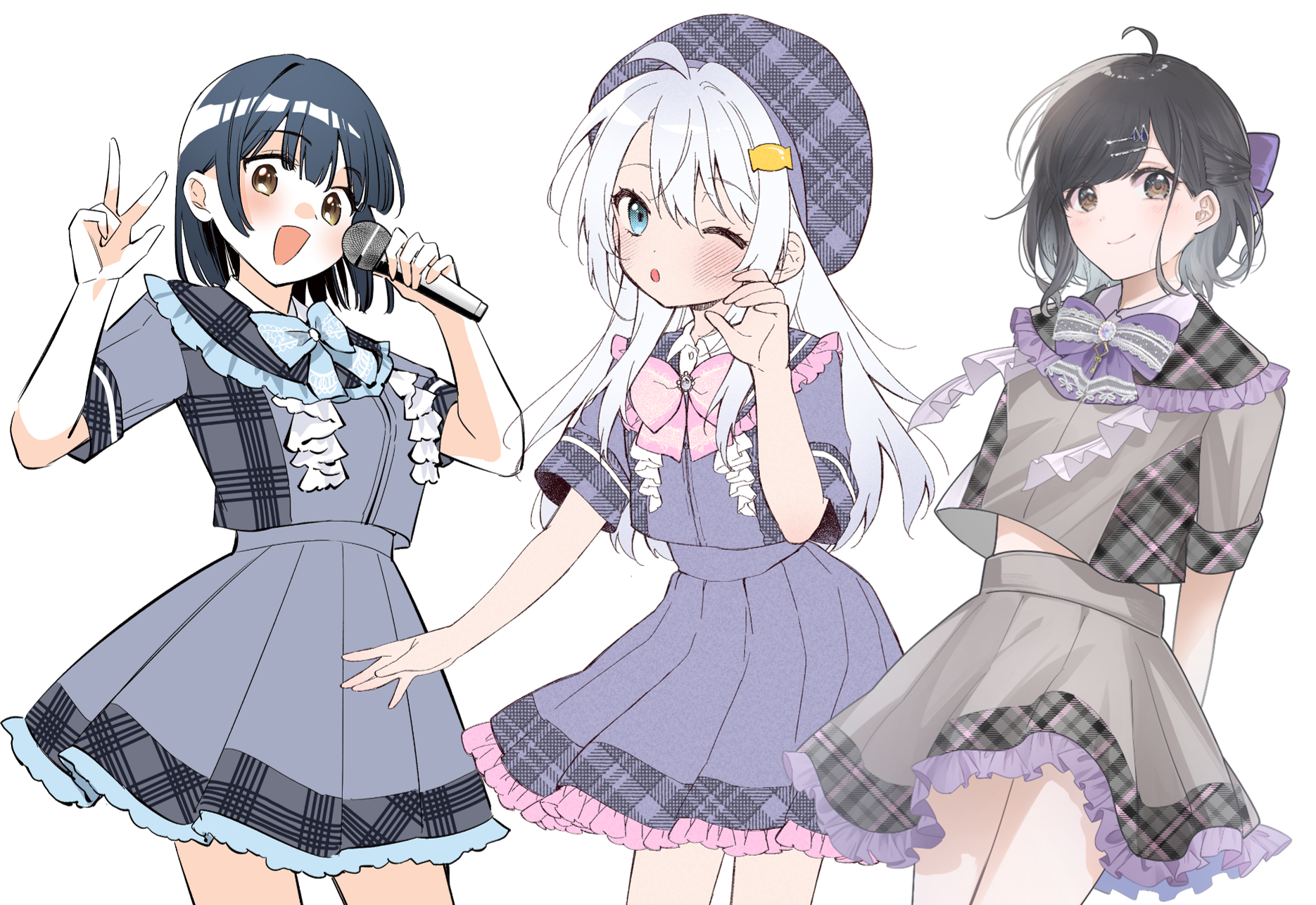 また、3人それぞれのイメージカラーのリボンやフリル、そして髪飾りもポイントになっています。(たかみ氏)